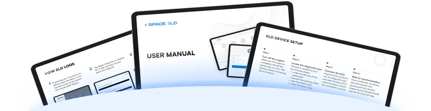 A complete step-by-step guide for setup and use. Learn how to connect your ELD, manage duty statuses, and send reports in just a few taps